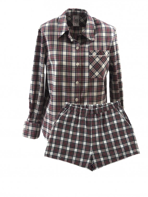 Pigiama corto in cotone - Scozzese bianco e rosso