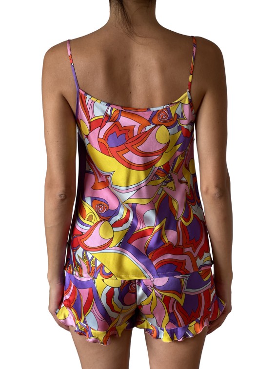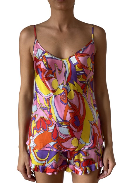 Pigiama top e pantalocini in viscosa shiny con voulant